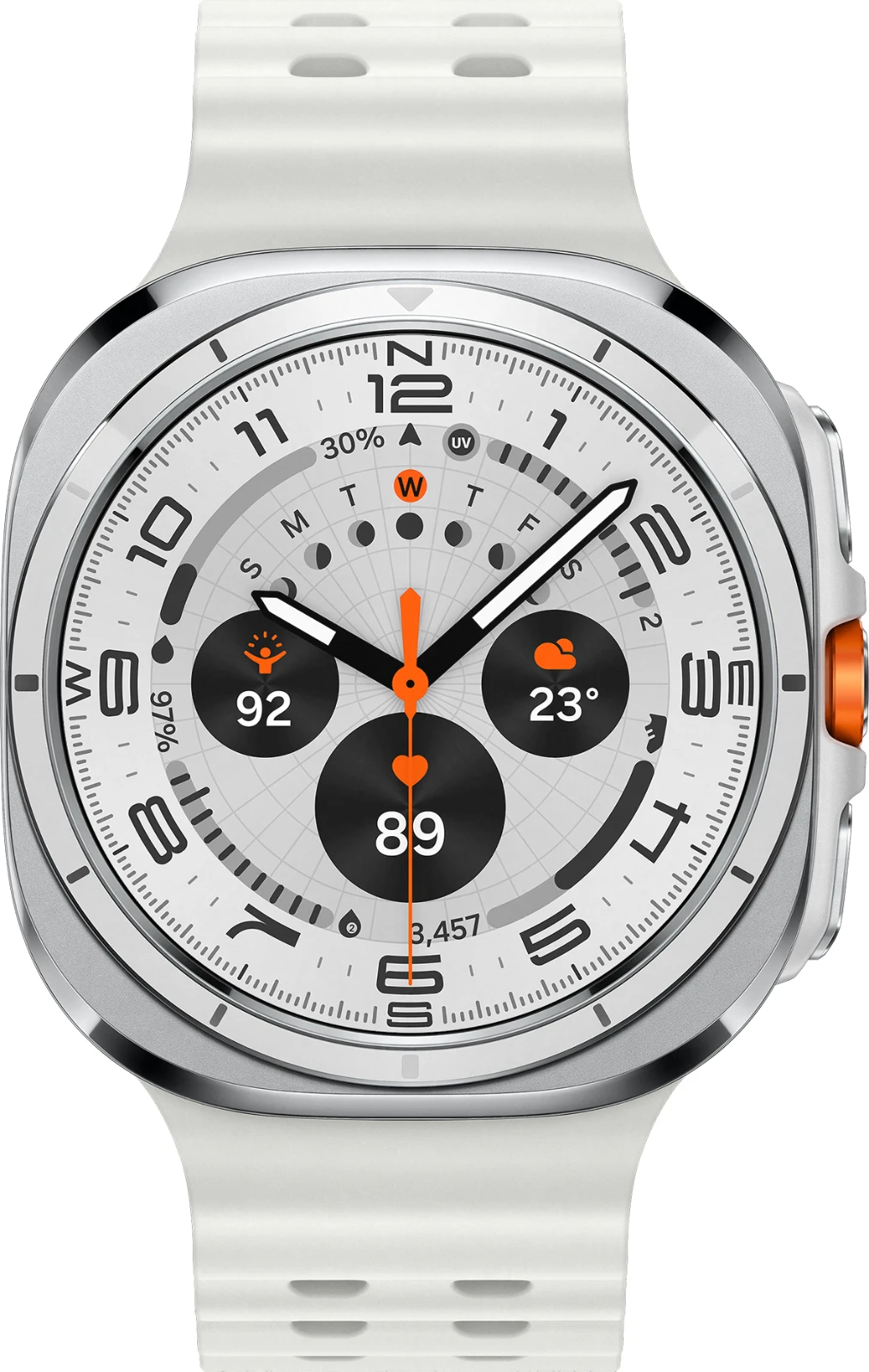 Mit der Galaxy Watch Ultra ist Galaxy AI jetzt auch auf den Galaxy Smartwatches angekommen.1 Die AIgestützten Funktionen in Verbindung mit dem präziseren Samsung BioActive Sensor und der starken Chipleistung machen deine Galaxy Watch Ultra jetzt noch intelligenter. Entdecke ein verbessertes